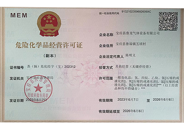 經營許可范圍:一般危化品 (充裝):氬[壓縮的或液化的]、氧[壓縮的或液化的]、氮[壓縮的或液化的]、二氧化碳[壓縮的或液化的]一般;罚罕、乙炔、氦[壓縮的或液化的]、